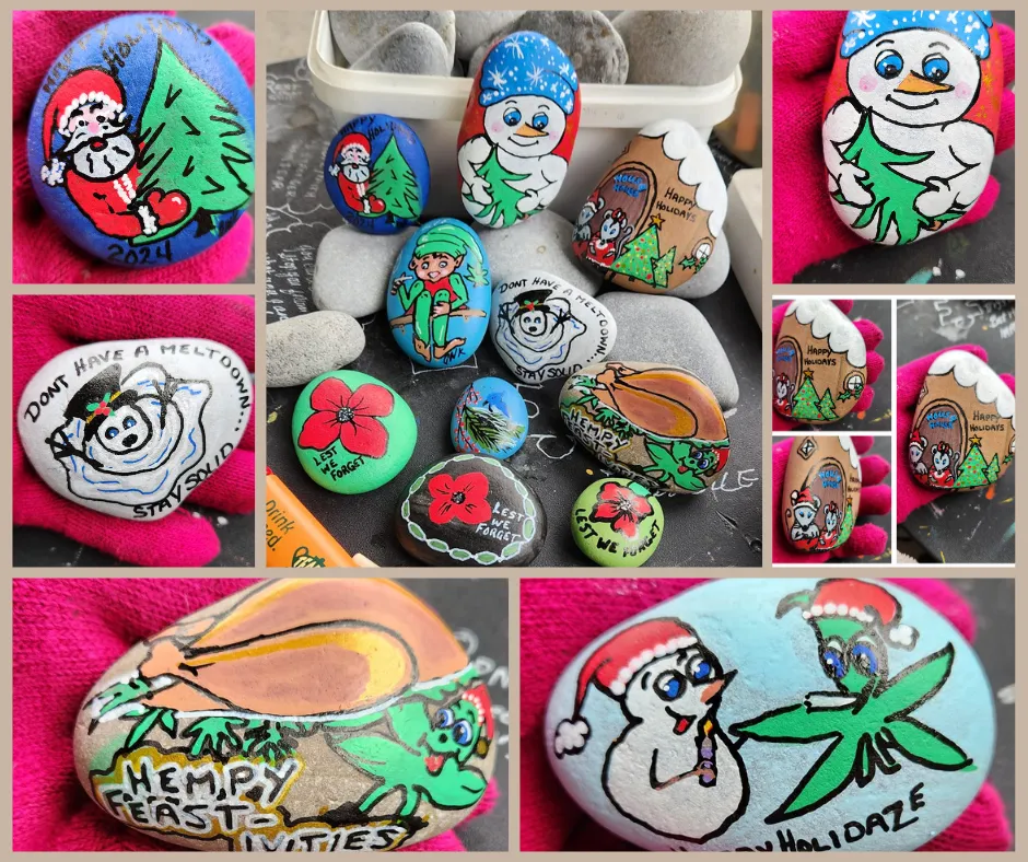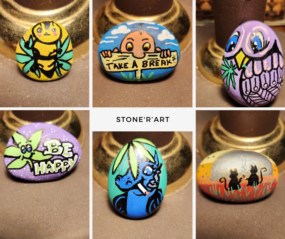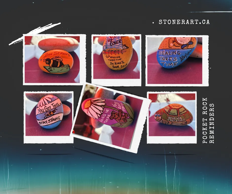 Stone R Art" is a unique collection of handprinted, themed stones, each signed "GNK," a tribute to my native name, Gigidoe Nodin Kwey—"Speaking Wind Woman." For over 20 years, painting rocks and stones has been a cherished form of meditation. My themed packs range widely from whimsical to inspirational, seasonal and more! I paint stones (and canvass too) - something for every occasion, making them perfect as gifts or personal reminders.