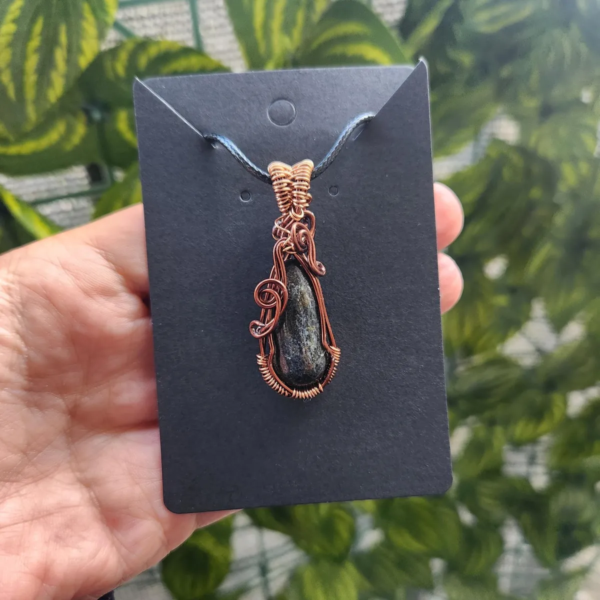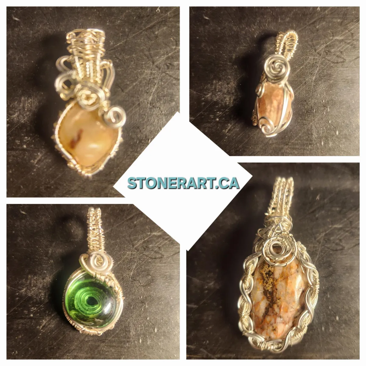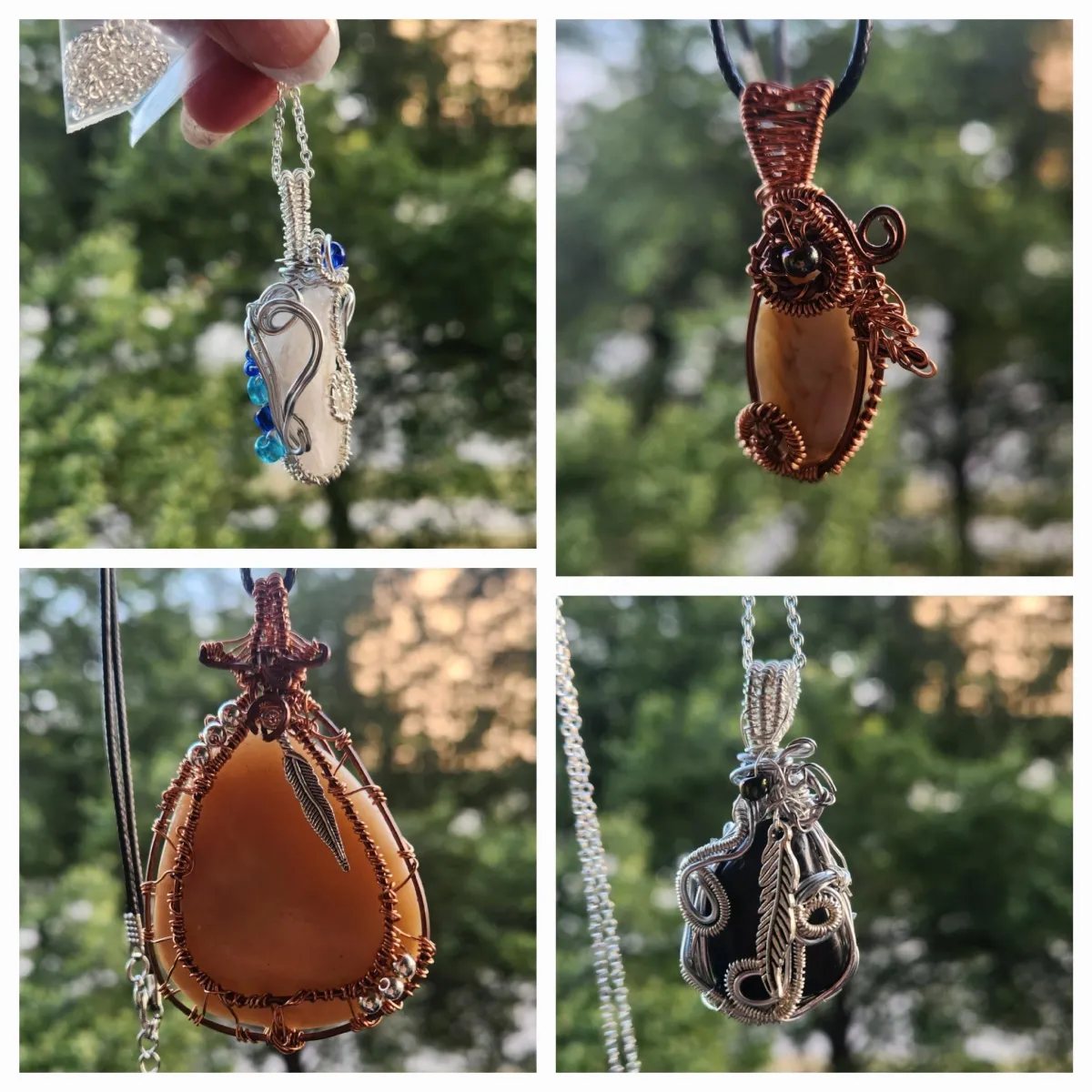 Each piece is one-of-a-kind, featuring carefully chosen gems and crystals—like jasper, quartz, agate, amethyst, and more—wrapped in hand-twisted wire that highlights their natural beauty. These pendants carry not only the artistry of the wrap but also the energy and meaning of the stones themselves, making them deeply personal keepsakes or meaningful gifts.