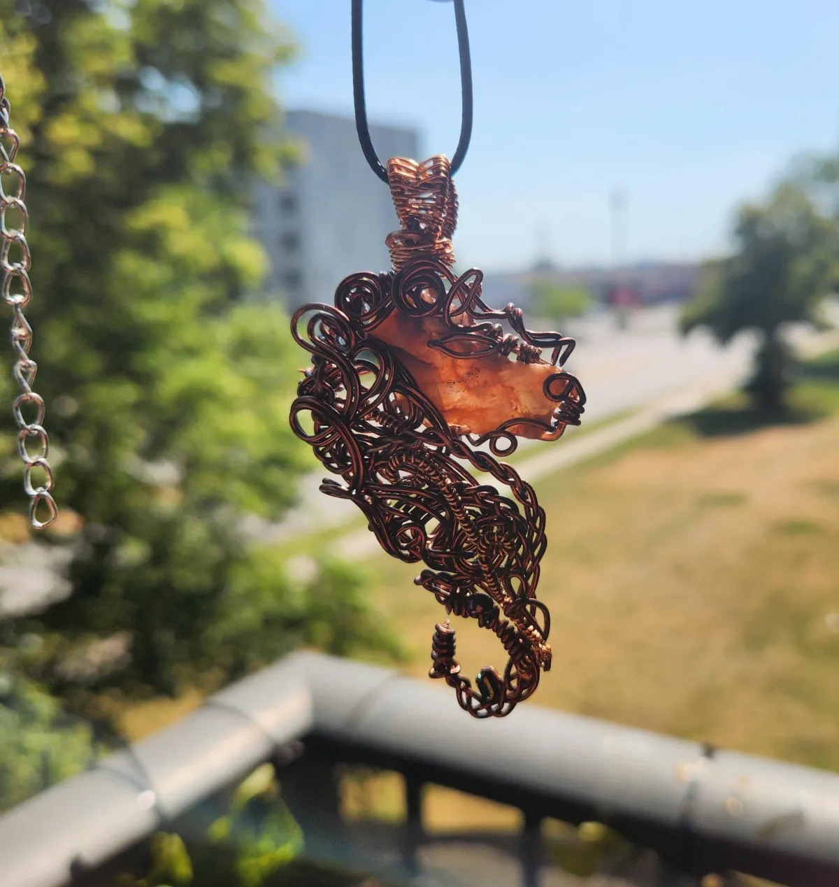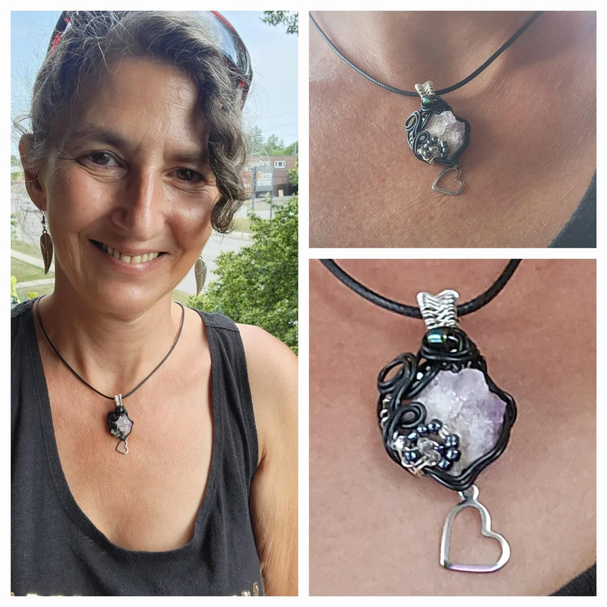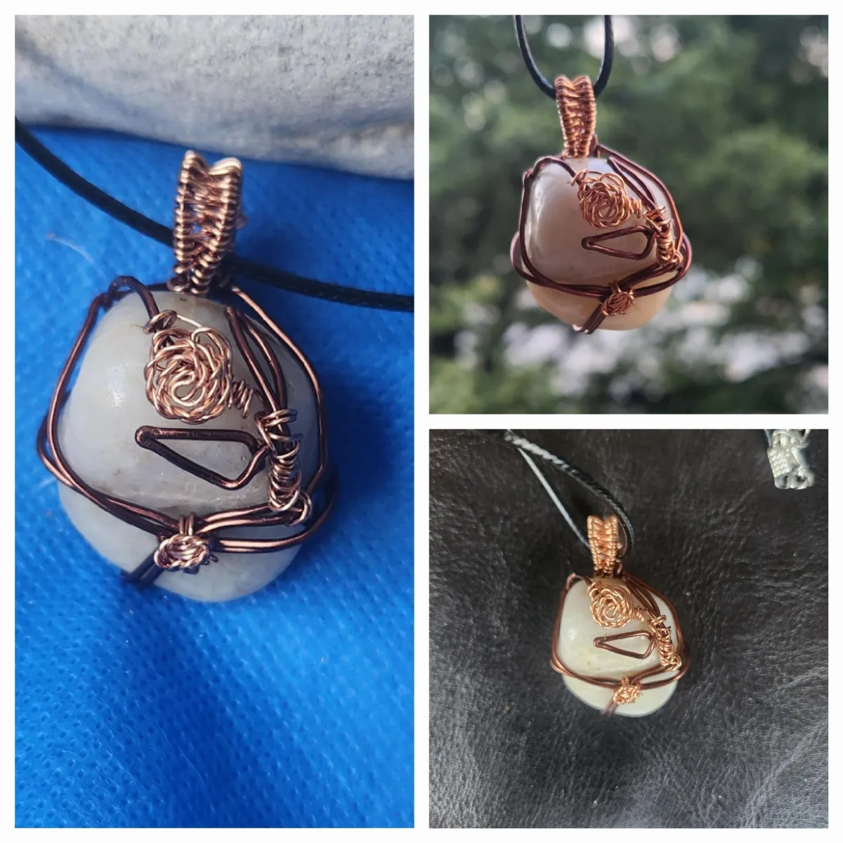 Each piece is one-of-a-kind, featuring carefully chosen gems and crystals—like jasper, quartz, agate, amethyst, and more—wrapped in hand-twisted wire that highlights their natural beauty. These pendants carry not only the artistry of the wrap but also the energy and meaning of the stones themselves, making them deeply personal keepsakes or meaningful gifts.